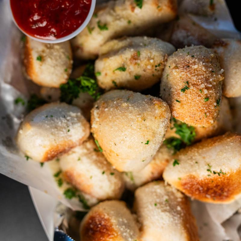 $9.99 per person • Pizzas (any toppings), Salad (your choice of dressing), and Garlic Butter Dough Buddies.